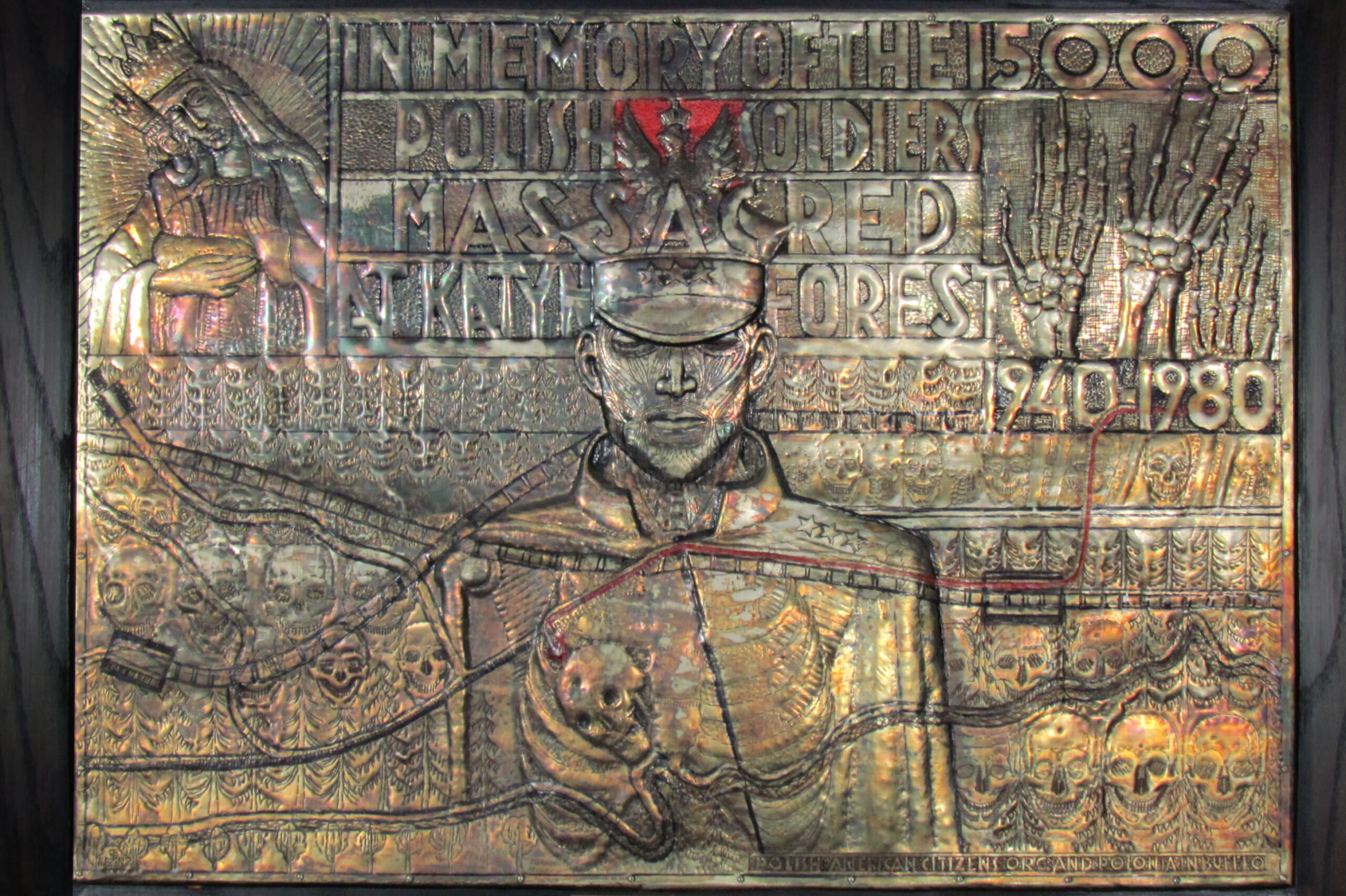 The plaque was created in 1980 for the 40th Anniversary of the Katyn Massacre; at that time, the Soviet Union had not admitted to committing the atrocity. Despite a great deal of evidence uncovered by an international panel of investigators, the USSR maintained that the Germans were at fault. Since then it has become clear that the Soviets killed more than 20,000 Poles in 1940. The City of Buffalo contracted with WEI to clean and preserve the plaque, as well as perform minor repairs to the frame.