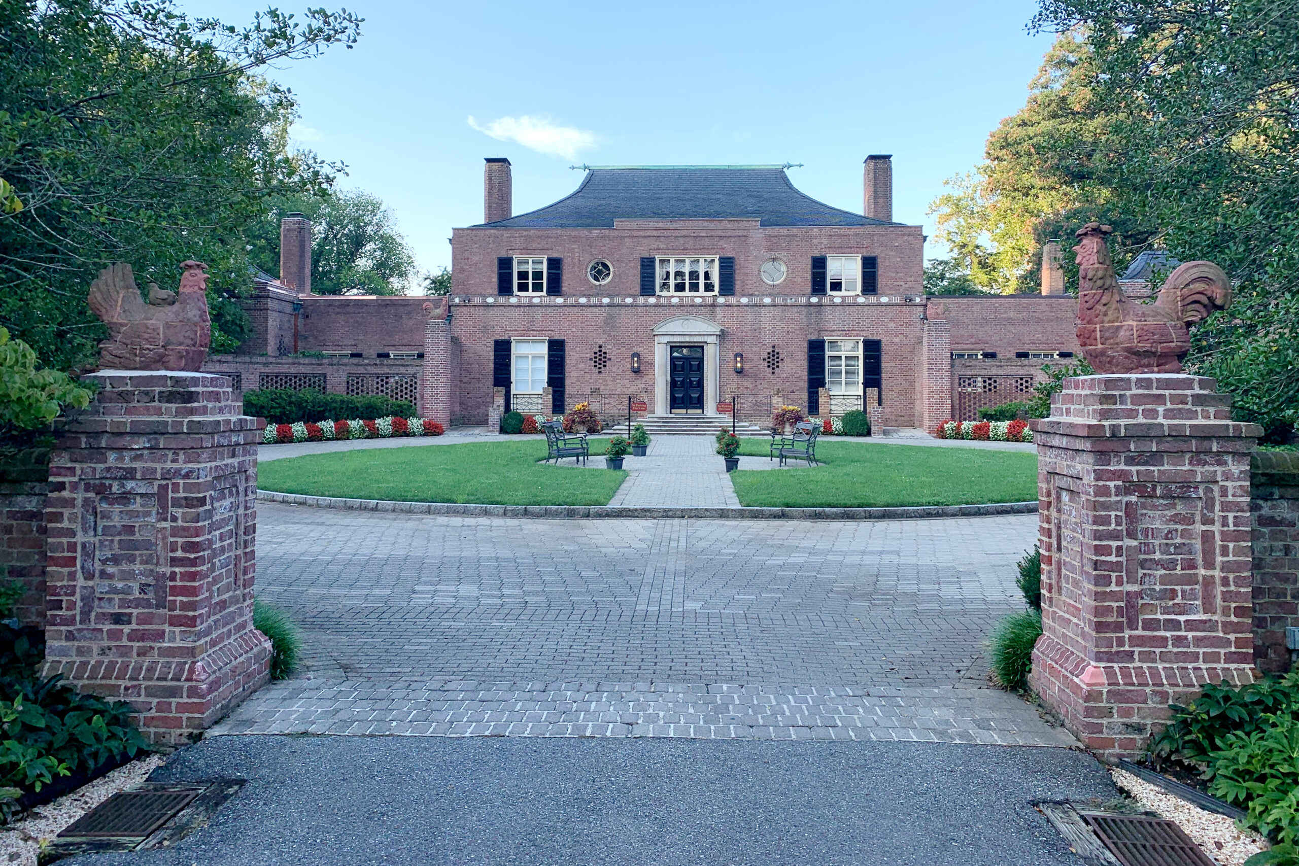 The main house, designed by Wm. Lawrence Bottomley and constructed in 1939, is a two-story, Regency Revival style structure, with symmetrical curving wing walls. Two brick piers at the house and two at the driveway entrance are topped by sculpted brick roosters and hens. After a hurricane severely damaged one of the chickens, WEI was asked to reconstruct it and repair the others, as well as the piers.